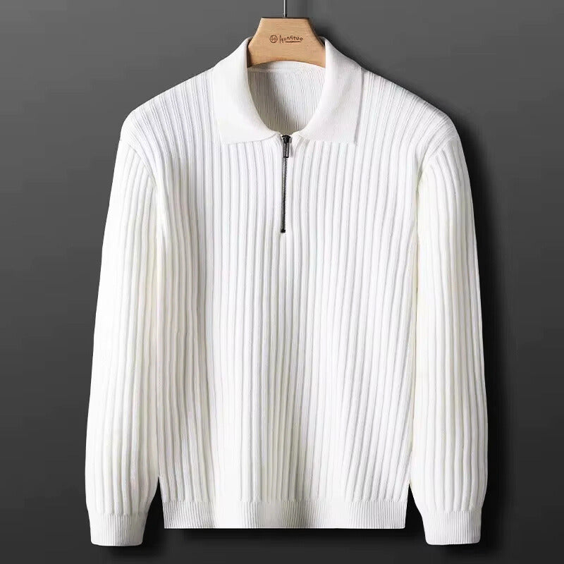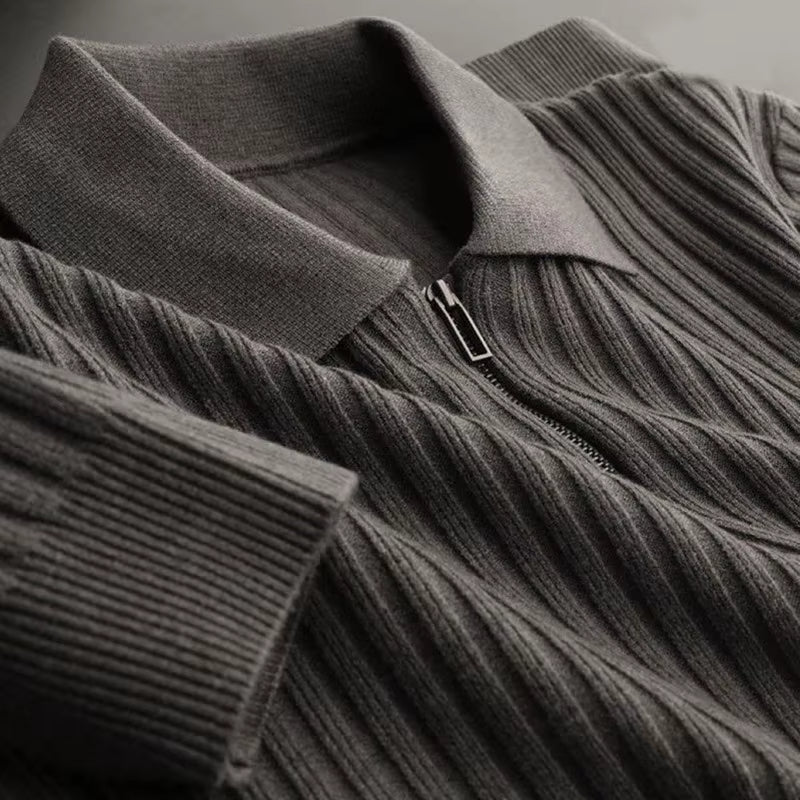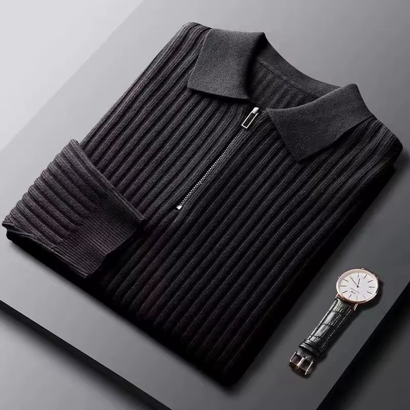 • Maatgerichte pasvorm met polokraag en ritssluiting
